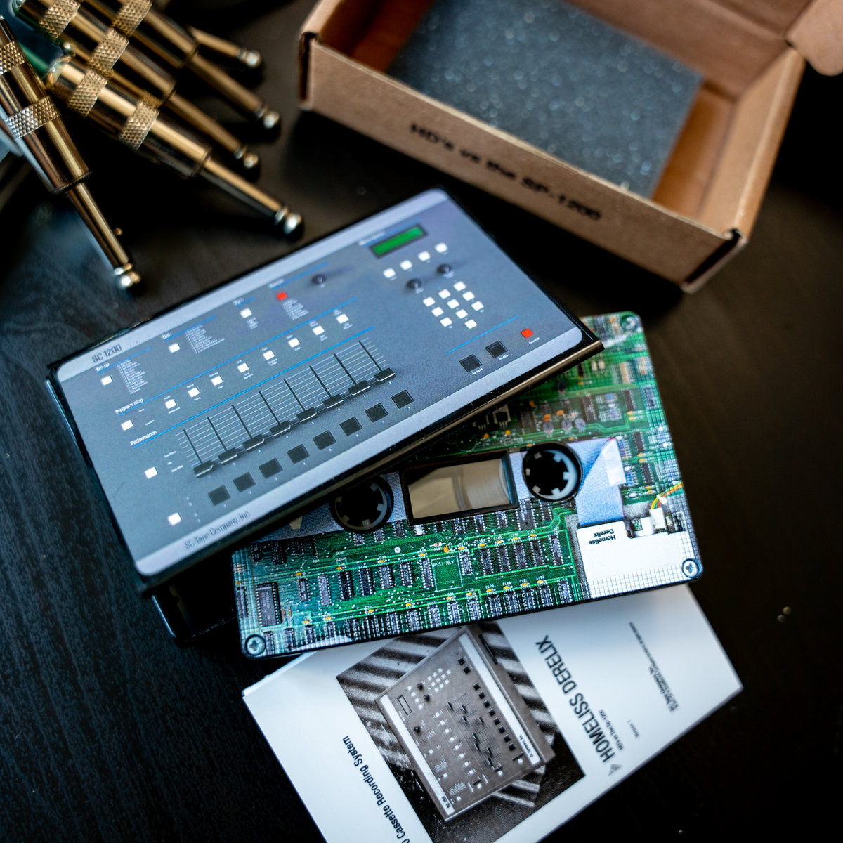 Hand assembled black "SC-1200" case with full pad printed cassette packaged in a custom SC branded corrugated outer box with foam padding. Each cassette comes with an 8-Panel liner note insert. Each piece of this package was carefully sourced from different vendors around the world. A truly unique product and collector's item. Assembled in Chinatown, Los Angeles